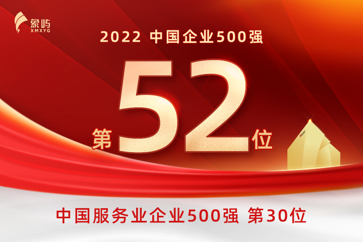9月6日,中國(guó)企業(yè)聯(lián)合會(huì)、中國(guó)企業(yè)家協(xié)會(huì)發(fā)布2022中國(guó)企業(yè)500強(qiáng)榜單,象嶼集團(tuán)排名第52位,較去年前進(jìn)8位;在同期發(fā)布的“2022中國(guó)服務(wù)業(yè)企業(yè)500強(qiáng)”中,象嶼集團(tuán)位列第30位,較去年前進(jìn)3位。自2007年參評(píng)榜單以來,象嶼集團(tuán)已連續(xù)16年登榜,排名年年躍升。