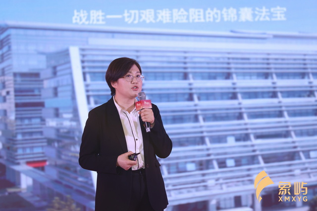 ▲象嶼金象融資租賃事業(yè)部副總監(jiān)邵華帶來《創(chuàng)新發(fā)展 揚帆遠航》的宣講