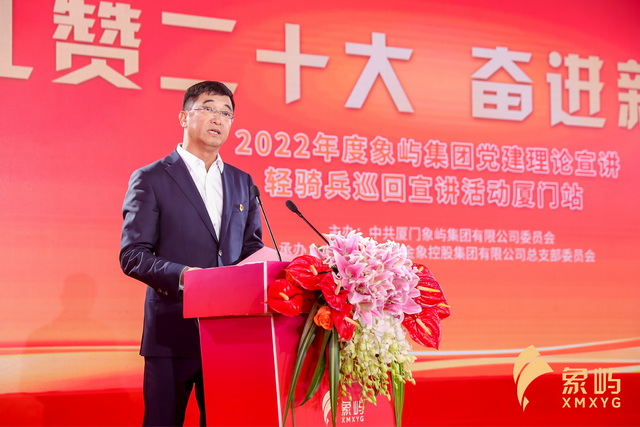 禮贊二十大,奮進新征程。11月28日,2022年度象嶼集團黨建理論宣講輕騎兵巡回宣講廈門站,在剛剛啟用的集團新總部——象嶼集團大廈舉行。象嶼人以這一獨具象嶼特色的黨建文化活動,學(xué)習(xí)宣傳貫徹黨的二十大精神,為新征程錨定紅色原點、鼓足文化風(fēng)帆,吹響繼往開來、接續(xù)奮斗的號角。廈門市國資委黨委副書記、二級巡視員陳華,集團領(lǐng)導(dǎo)班子,老領(lǐng)導(dǎo)老同志,在廈公司員工代表等現(xiàn)場參加活動。