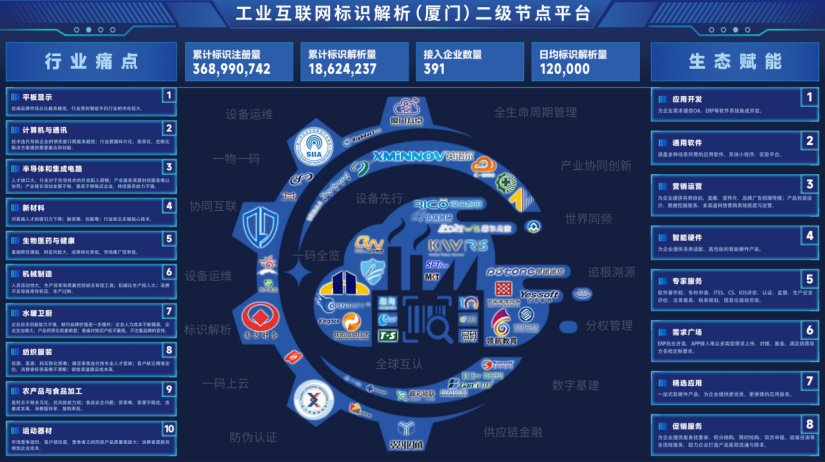 2022年8月,由象嶼集團(tuán)旗下廈門(mén)市物聯(lián)網(wǎng)產(chǎn)業(yè)研究院承接建設(shè)的國(guó)家工業(yè)互聯(lián)網(wǎng)標(biāo)識(shí)解析(廈門(mén))綜合型二級(jí)節(jié)點(diǎn)正式投入運(yùn)營(yíng),為廈門(mén)乃至全國(guó)企業(yè)提供專(zhuān)業(yè)的標(biāo)識(shí)注冊(cè)、標(biāo)識(shí)查詢(xún)、標(biāo)識(shí)解析等數(shù)據(jù)服務(wù)。迄今平臺(tái)標(biāo)識(shí)注冊(cè)量已超3.7億條,標(biāo)識(shí)解析量近2千萬(wàn)次,為保障工業(yè)互聯(lián)網(wǎng)互聯(lián)互通提供了關(guān)鍵基礎(chǔ)設(shè)施,助力工業(yè)企業(yè)提升數(shù)字化轉(zhuǎn)型能力,為廈門(mén)產(chǎn)業(yè)數(shù)字化發(fā)展注入一股澎湃新動(dòng)能。