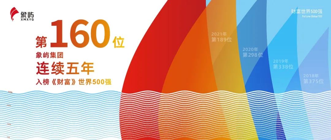 2022年8月3日,《財(cái)富》世界500強(qiáng)榜單揭曉。象嶼集團(tuán)以2021年度750.94億美元的營(yíng)收,排名第160位,較去年上升29位?;厥孜迥昵?,象嶼首次躋身世界500強(qiáng)榜單,位列第375位。五年后,象嶼集團(tuán)已較上榜之初實(shí)現(xiàn)營(yíng)收翻番、凈利潤(rùn)增長(zhǎng)2.2倍,營(yíng)收、凈利潤(rùn)年均復(fù)合增速分別高達(dá)23%和34%。持續(xù)躍升的榜單排名,充分彰顯象嶼改革發(fā)展的強(qiáng)勁動(dòng)能。