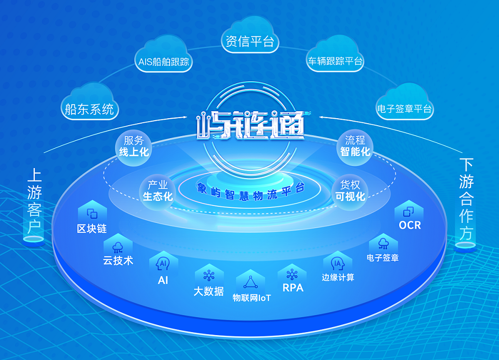 2022年,象嶼股份依托象嶼智慧物流倉(cāng)儲(chǔ)體系,搭建數(shù)字供應(yīng)鏈服務(wù)平臺(tái)“嶼鏈通”,集成區(qū)塊鏈、物聯(lián)網(wǎng)、大數(shù)據(jù)、人工智能等技術(shù),推出預(yù)付款訂單融資“嶼采融”、在庫(kù)現(xiàn)貨質(zhì)押融資“嶼倉(cāng)融”、在途現(xiàn)貨質(zhì)押融資“嶼途融”等產(chǎn)品矩陣,與多家金融機(jī)構(gòu)完成系統(tǒng)對(duì)接,并開(kāi)發(fā)APP、公眾號(hào)、網(wǎng)頁(yè)端等多終端自助服務(wù)功能,實(shí)現(xiàn)全流程線上化的融資放款及解押放貨,最快5至10分鐘即可完成,為破解中小企業(yè)融資難、融資貴提供新渠道。