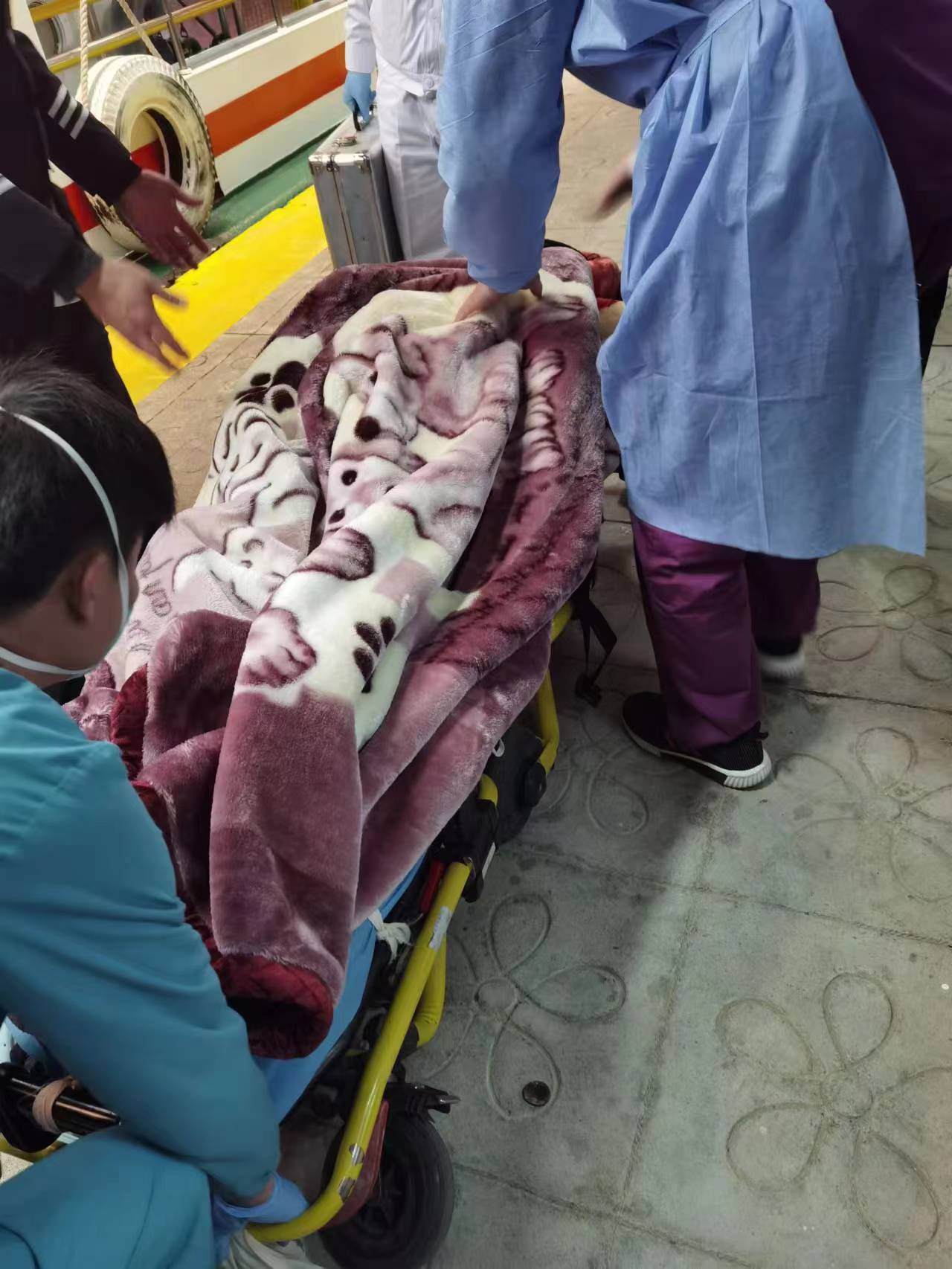 ▲將落水人員移交給醫(yī)護(hù)人員