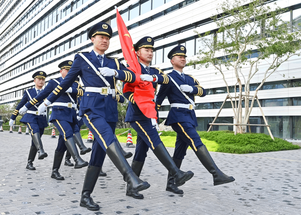 上午8:18,莊嚴的升國旗儀式正式開始,象嶼集團領導班子、各行業(yè)各公司負責人、員工代表等約300人整齊列隊參加。旗手執(zhí)旗前行的鏗鏘足音,象征著新的一年腳踏實地、砥礪前行。當鮮艷的五星紅旗在象嶼集團大廈前冉冉升起,全場象嶼人也將愛國之情、報國之志深深地刻進心里。