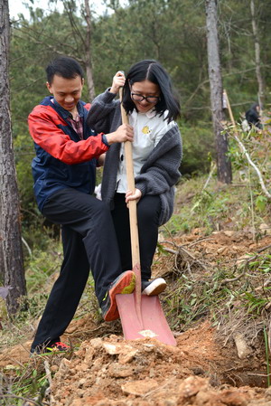 去年在象嶼林種下的喬木楓樹苗,雖然經(jīng)過莫蘭蒂臺風(fēng)的侵襲,卻得益于周邊大樹的庇護(hù),現(xiàn)已茁壯成長,片片紅葉惹人喜愛。今年志愿者們在象嶼林里植下了鐵刀木,防火耐蟲蟻,而且相比去年的喬木要來得高大,多年后將使象嶼林高低錯落有致,豐富仙岳山生態(tài)環(huán)境。
