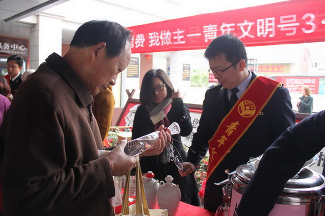 2017年315主題活動現(xiàn)場,象嶼發(fā)展運營中心聯(lián)合大嶝小鎮(zhèn)青年文明號聯(lián)創(chuàng)共建團隊,在大嶝市場設(shè)置煙酒、工藝品、食品三個鑒假專區(qū),向游客講解識假辨假的方法,吸引不少游客前來咨詢了解。該活動已連續(xù)舉辦了五屆。