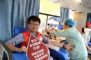 “我獻(xiàn)血我快樂(lè)!我獻(xiàn)血我光榮!”
