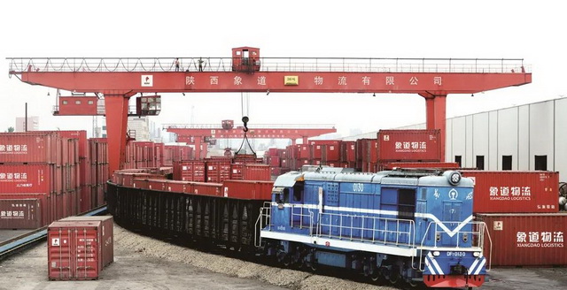 河南省三門峽市,三門峽象道物流園區(qū)車站里,滿載氧化鋁的100個(gè)集裝箱即將發(fā)往新疆昌吉,用于制造鋁錠。這一列鐵路集裝箱裝載的氧化鋁重達(dá)3000噸,相當(dāng)于95輛大型貨車的運(yùn)輸量,而能耗和污染物排放僅是公路運(yùn)輸?shù)?5%和8%。