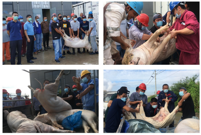 長時(shí)間停留海外、加班加點(diǎn),思鄉(xiāng)、疲倦是人之常情。在象嶼集團(tuán)黨委的關(guān)心下,在黨委副書記、總裁陳方的具體指導(dǎo)下,象嶼管理團(tuán)隊(duì)積極行動(dòng)起來,慰問外協(xié)單位一線員工。考慮到發(fā)放豬肉比較實(shí)在,又能滿足中國員工對家鄉(xiāng)味道的想念,“尋豬”一事就這樣提上日程。