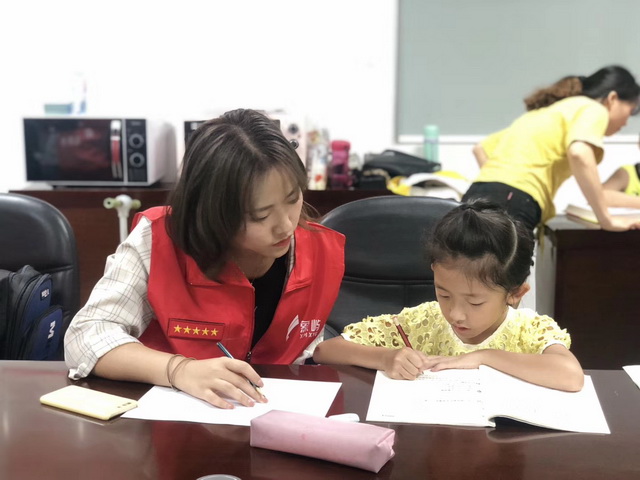看,這認(rèn)真教學(xué)的一對對。小嘉嘉苦惱于一篇“做家務(wù)”的作文,象嶼小姐姐便和他彼此分享做家務(wù)的心得,讓他有了靈感。當(dāng)稚嫩的面龐上泛起絢爛的笑容,志愿者的心里也滿是幸福。