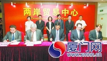 昨日上午,廈臺(tái)兩地5家企業(yè)共同簽署兩岸貿(mào)易便利化及跨境電子商務(wù)合作協(xié)議,為“快速通道”的實(shí)現(xiàn)鋪下“敲門(mén)磚”。
