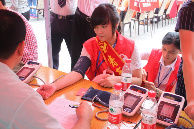 活動還未開始,獻(xiàn)血服務(wù)柜臺前就已經(jīng)聚集了滿滿的人潮,志愿者耐心地排著隊,等待獻(xiàn)血前的體格檢查。廈門市民黃小姐是第一次獻(xiàn)血,得知有這樣的活動,她一大早就從市區(qū)驅(qū)車到大嶝小鎮(zhèn)參與活動,“獻(xiàn)血本來是另一種向社會表達(dá)愛心的方式,和臺灣同胞一起獻(xiàn)血,意義更特別了?!钡却艘欢螘r間以后,黃小姐在醫(yī)生的允許下登上了獻(xiàn)血車,看著自己的血液通過導(dǎo)管緩緩流入血袋時,黃小姐臉上笑容特別燦爛。