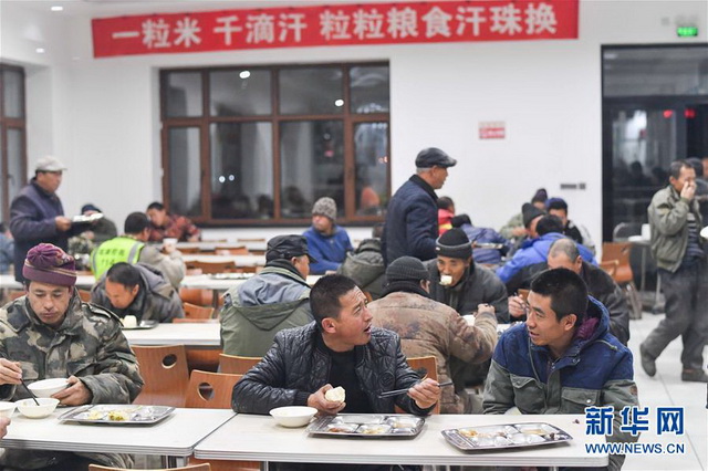 在黑龍江北安市的北安象嶼金谷農(nóng)產(chǎn)有限責任公司免費餐廳中,糧農(nóng)們邊用晚餐邊等待過磅、卸糧、結算