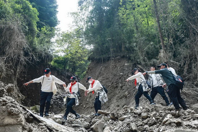 陳方總裁與鄧啟東總經(jīng)理當(dāng)先鋒打頭陣,帶領(lǐng)先遣隊(duì)徒步穿越紅軍小道,克服螞蟥溝的心理障礙和高海拔的缺氧不適,跨越1100米的垂直高度,親身體驗(yàn)攀峻嶺、過草地的長征歷程,感受共產(chǎn)黨人革命理想高于天的堅(jiān)定力量,彰顯國有企業(yè)緊跟國家戰(zhàn)略先行先試的先鋒精神。
