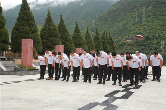 緬懷革命先烈,致敬紅軍精神。懷著肅穆敬仰之情,“挑戰(zhàn)之旅”隊(duì)伍來到紅軍飛奪瀘定橋紀(jì)念碑廣場(chǎng),敬獻(xiàn)花籃,向紀(jì)念碑三鞠躬,對(duì)紅軍烈士表達(dá)深深的敬意和無盡的懷念。