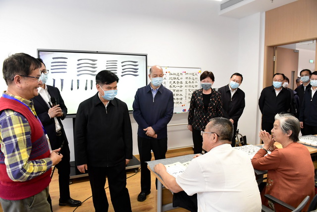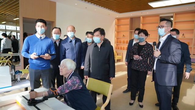 在聽取項(xiàng)目介紹后,調(diào)研組一行參觀了休閑文化配套空間、護(hù)理樓、養(yǎng)老公寓等區(qū)域,對(duì)象嶼慈愛的長者入住進(jìn)展、醫(yī)養(yǎng)結(jié)合、慈愛學(xué)院課程開設(shè)、疫情防控等整體情況及運(yùn)營成果進(jìn)行深入了解,重點(diǎn)關(guān)注了包括“智慧一卡通”、全院可視化管理系統(tǒng)、智能餐盤等在內(nèi)的智慧化養(yǎng)老服務(wù)體系,并給予充分肯定。