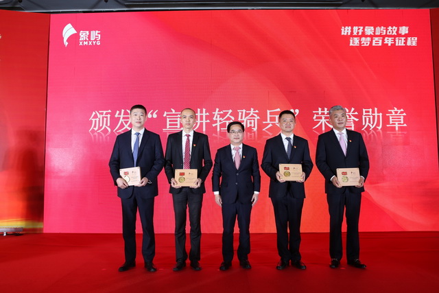 ▲象嶼集團黨委委員、紀委書記許振龍為宣講人授予“象嶼集團黨建理論宣講輕騎兵勛章”