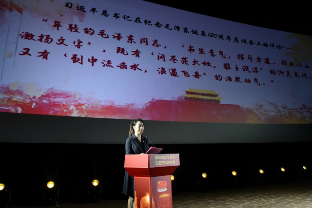 ▲廈門(mén)萬(wàn)舜文化產(chǎn)業(yè)投資發(fā)展有限公司張君雅帶來(lái)《志當(dāng)存高遠(yuǎn)》——青年毛澤東事跡分享