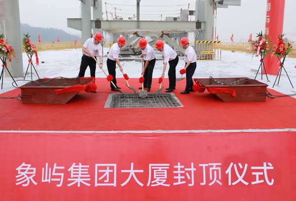 象嶼集團(tuán)黨委書記、董事長(zhǎng)張水利、黨委副書記、總裁陳方等集團(tuán)黨委班子、經(jīng)營(yíng)班子、各職能部門總監(jiān)、投資企業(yè)經(jīng)營(yíng)班子代表們出席封頂儀式,與工程建設(shè)者們共同見證了這一激動(dòng)人心的時(shí)刻。