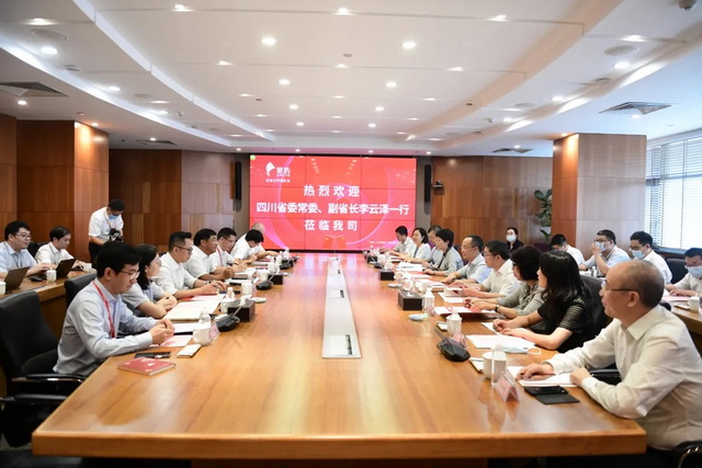 ▲四川省委常委、副省長李云澤一行與象嶼集團黨委書記、董事長張水利等座談