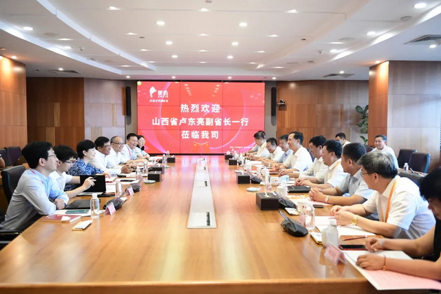 ▲山西省副省長盧東亮一行與象嶼集團黨委書記、董事長張水利等座談