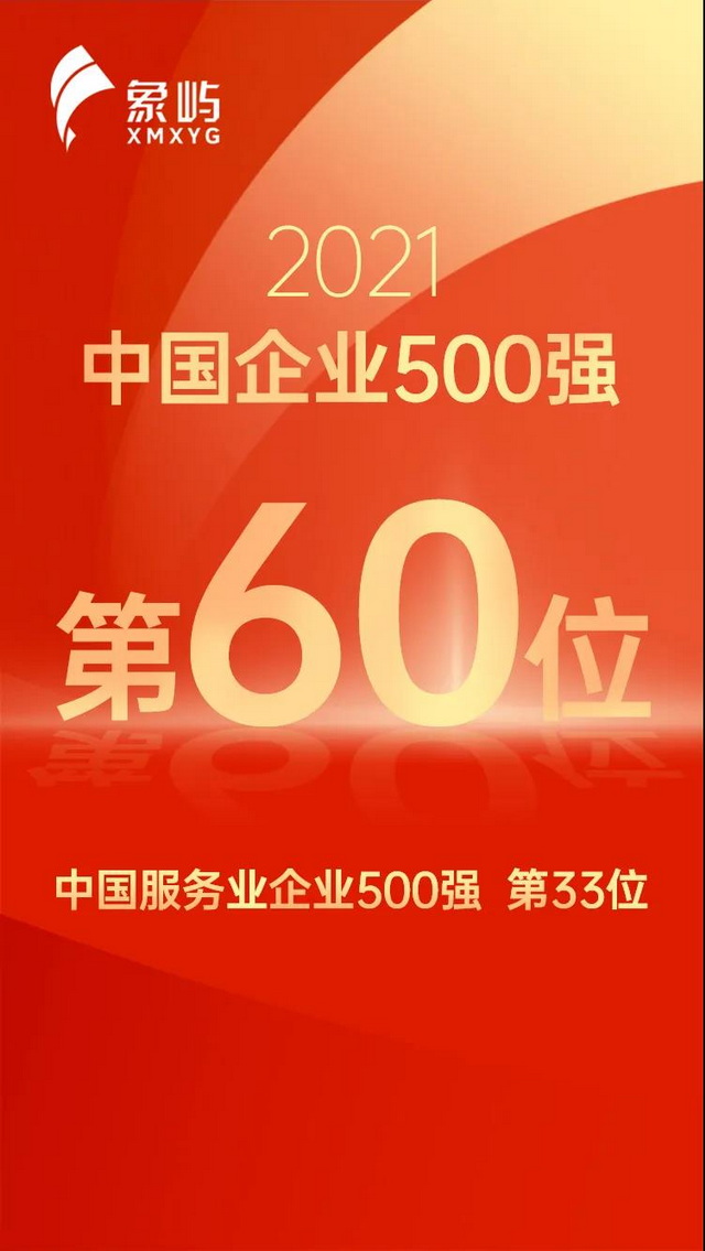 9月25日,中國企業(yè)聯(lián)合會、中國企業(yè)家協(xié)會發(fā)布2021年中國企業(yè)500強(qiáng)榜單,象嶼集團(tuán)以37483544萬元人民幣的營收排名第60位,較去年前進(jìn)17位;在同期發(fā)布的“2021年中國服務(wù)業(yè)企業(yè)500強(qiáng)”中,象嶼集團(tuán)位列第33位,較去年前進(jìn)10位。自2007年參評榜單以來,象嶼集團(tuán)已連續(xù)15年登榜,排名年年躍升。