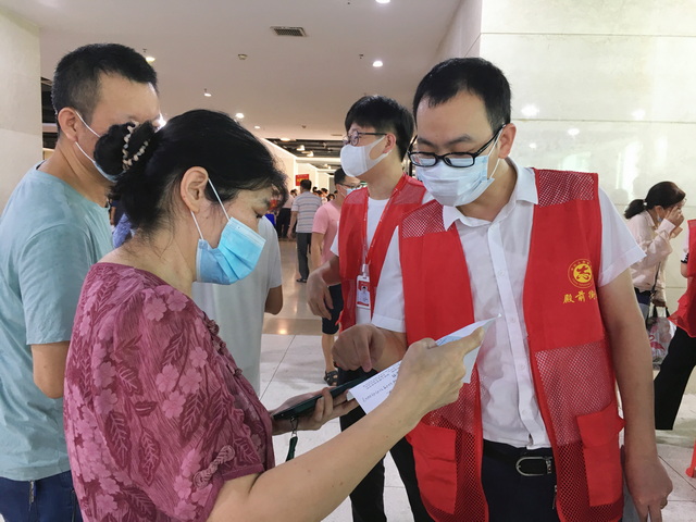 這項(xiàng)看似簡單的工作,實(shí)則是對服務(wù)精神的極大考驗(yàn)。前來接種疫苗的人群中,有不識字的,有不會使用智能手機(jī)的,有年齡偏大視力不佳的,也有操著各種方言交流困難的。象嶼青年們耐心地一遍遍講解,一遍遍示范操作。嘴巴說干了,嗓子說啞了,身上濕透了,但他們說:“寧可自己多流汗,也絕不讓群眾白跑一趟、多跑一趟,不把疫情隱患留到下一天。”