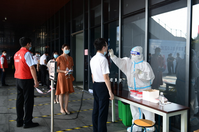 為控制疫情蔓延,廈門市啟動全市全員核酸檢測,要求做到“應(yīng)檢盡檢”,不漏一人。象嶼集團(tuán)第一時間響應(yīng),主動聯(lián)系檢測機構(gòu),在廈門國際航運中心開設(shè)核酸檢測點,組織集團(tuán)員工就近檢測,緩解社區(qū)等公共檢測點的檢測壓力。9月15日上午9點,核酸檢測準(zhǔn)時開始。象嶼員工們在志愿者的引導(dǎo)下,佩戴口罩,有序排隊,保持安全距離,分批錯峰完成采樣。