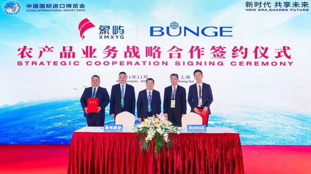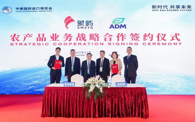 簽約儀式上,國(guó)際四大糧商中的兩家——ADM和邦吉現(xiàn)身簽約臺(tái)。象嶼股份分別與兩家重量級(jí)企業(yè)以及全球領(lǐng)先的農(nóng)業(yè)綜合企業(yè)美國(guó)CHS公司簽署農(nóng)產(chǎn)品業(yè)務(wù)戰(zhàn)略合作協(xié)議。當(dāng)天上午,象嶼股份還與新加坡翱蘭國(guó)際簽約開展戰(zhàn)略合作。