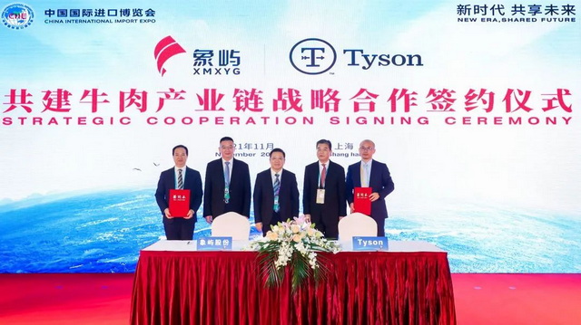 集中簽約儀式上,象嶼股份與美國(guó)最大的肉類供應(yīng)商之一泰森食品,就共建牛肉產(chǎn)業(yè)鏈簽署戰(zhàn)略合作協(xié)議。