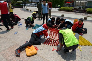 為幫助競選者更好地樹立無邊界組織思維,本次拓展一改常規(guī),分組成員不再固定,每一環(huán)節(jié)都作動態(tài)調整,每位競選者需要不斷尋找新合伙人、組建新團隊,并在這一過程中共度難關?!盎鹁€報到”以團隊協(xié)力奔跑的方式幫助競選者釋放自我、直入主題;“我是大富翁”讓競選者體悟到資源整合優(yōu)化的重要性,建立起合作共贏的團隊意識;“步步高升”、“斗轉星移”、“左右開動”不僅勞其筋骨,更苦其心志,考驗著每位競選者的抗壓能力、分工協(xié)作以及風險意識;“七巧板”因小失大的全軍覆沒,則讓競選者們集體沉默,開始學著跳出個人利益優(yōu)先的思維局限,重新思考個體在團隊中的角色定位,并更深地理解“共贏”、“利益最大化”等詞匯的內涵。歷經艱苦的身心洗禮,競選者們在收官項目“多米諾骨牌”中空前凝聚,“天災人禍”只會讓他們愈挫愈勇,烈日下神經的緊繃、匍匐的姿態(tài)和接續(xù)的汗水只為贏得最后勝利。從各式象嶼文化創(chuàng)意造型,到最后集體創(chuàng)作的多彩象嶼集團標識,青年象嶼人通過骨牌表達著對集團的熱愛,他們對象嶼夢的向往與追求也從中展露無遺,正如他們在即興晚會上的所歌所舞所演,青春激情、夢想綻放,就在你我身上。