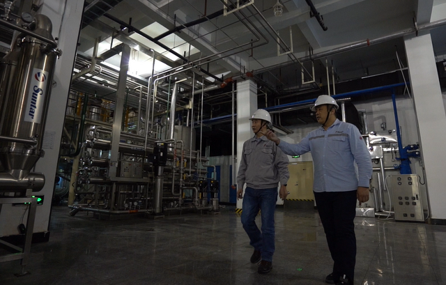 2021年4月,公司接到了首批客戶訂單,準備試制30噸纈氨酸,還是這群年輕的象嶼人,頂著現(xiàn)場40℃的高溫,連續(xù)高強度工作3個月,實現(xiàn)了首批環(huán)境友好型纈氨酸產(chǎn)品的順利交付。