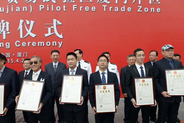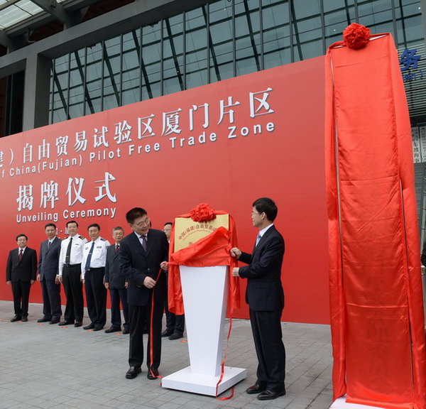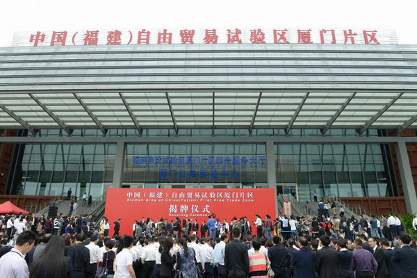 中國(福建)自由貿(mào)易試驗(yàn)區(qū)廈門片區(qū)在兩岸貿(mào)易中心舉行揭牌儀式